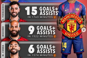 作为对比,曼联球员本赛季参与进球最多的是B费,1763分钟参与15球,锋线三将姆伯莫参与9球、库尼亚参与6球、舍什科参与6球。
