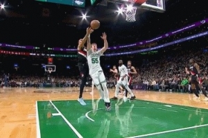 GIF-吕佩尔与谢尔曼争抢篮板,裁判吹绿军球,开拓者挑战失败