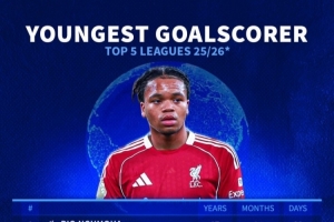 本赛季五大联赛最年轻进球者排名(所有赛事):