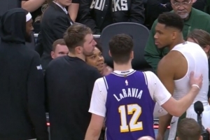 东契奇:“是的,花了一些时间,裁判刚开始不想给我们,后来字母哥把球拿给了我们,所以我很尊重他!”