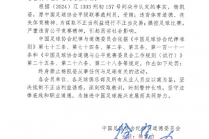 24直播网01月29日讯 中国足协公布第二批禁足名单,原中甲裁判杨凯姿因受贿、操控比赛被终身禁足,成为首位被罚的裁判。此举旨在警示从业人员坚守法律与职业道德,共同推进中国足球发展。