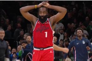 GIF-哈登压哨出手险些绝平!