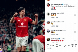 马奎尔社媒晒出庆祝的照片,并写道:“世上没有比身为红魔更棒的事情了!”