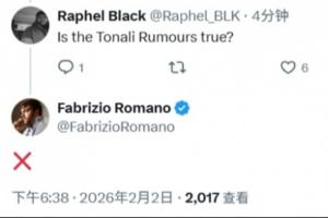 在一则有关阿森纳的转会动态下,一位球迷向罗马诺提问:“托纳利的传闻是真的吗?”
