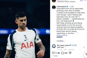 体育资讯2月3日讯 热刺在昨日2-2战平曼城,热刺后卫罗梅罗在今日更新社交媒体,发表了感想。