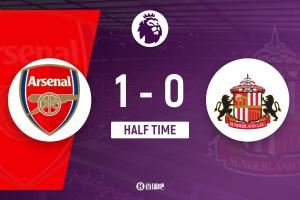半场-阿森纳暂1-0桑德兰 苏维门迪贴地斩哈弗茨救险萨利巴染黄
